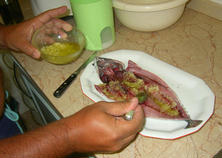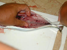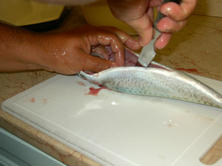 seguida, e com uma faca bem afiada, escalamos a cavala tal como se