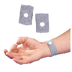 material elástico (Sea Bands) com uma peça plástica que pressiona o