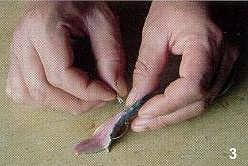 com a parte grossa da faca/navalha e modo a