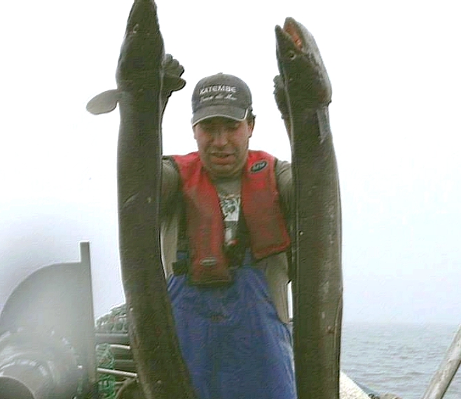 próximo da enguia, mas vive apenas na água salgada. Atinge a